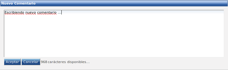 Para añadir un comentario basta con pulsar sobre el botón nuevo y se mostrará una ventana para introducir el comentario deseado (con un máximo de 1000 caracteres).